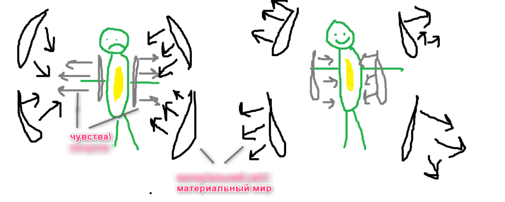Чувства всегда притягивают то, на что они направлены. Если они направлены в материальный мир, то и притянут его к вам, но если направлены в себя и на свет внутри, то будут притягивать свет.