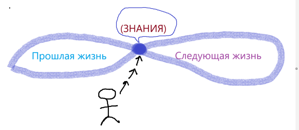 Знания загружаются в точку между жизнями с прошлой жизни, и после рождения с этой точки загружаются в человека. Но человек не помнит прошлое. Эти знания проявляются через окружение: родителей или учителей. Проявляются — значит, что человек впитывает их и понимает.